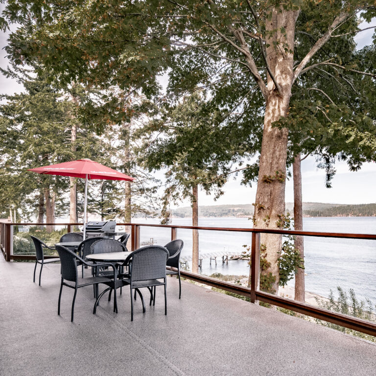 Overlooking our private beach, Discovery Lodge enjoys a huge private oceanfront deck. BBQ is provided. Enjoy breathtaking sunrises and sunsets while relaxing in the spacious eight-person hot tub.
