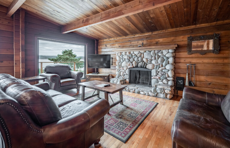 This newly renovated, spacious cabin is steps away from the edge of the ocean. With its unobstructed panoramic ocean view, river rock fireplace and gourmet kitchen, it offers the ideal retreat. All three bedrooms feature an ensuite with a king/double bed in the first bedroom and a queen/single bed in both of the other bedrooms. BBQ is provided. Relax on the large deck or in your personal hot tub while enjoying the view.